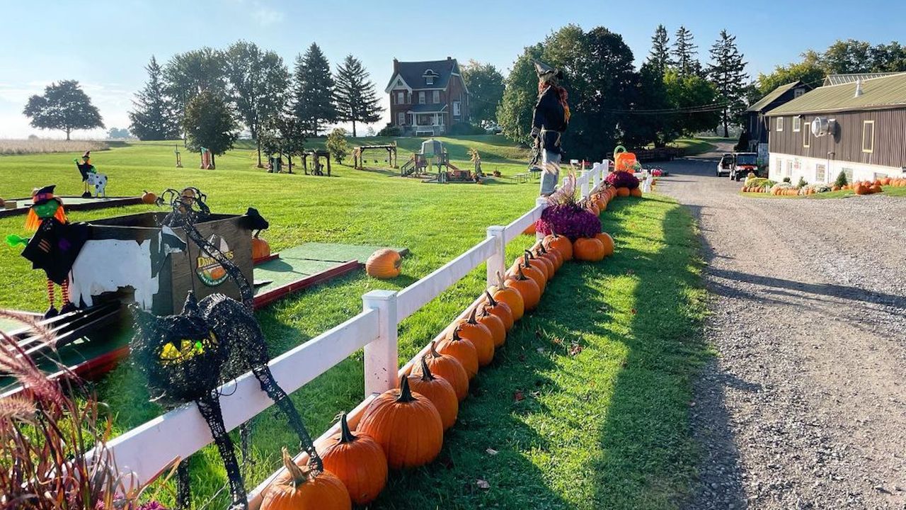 This Mount Albert farm is about a one-hour drive from Toronto, and pumpkin-picking season is typically in full swing at the end of September/throughout October. Make sure to check out the farm’s 10-acre barnyard playland, visit the farm animals and sample delicious treats from the Farm Market Café. Their “fall fun festival”— complete with wagon rides, puppet shows, and a singing chicken and fox show — runs weekends until Oct. 31. Click here for pricing.