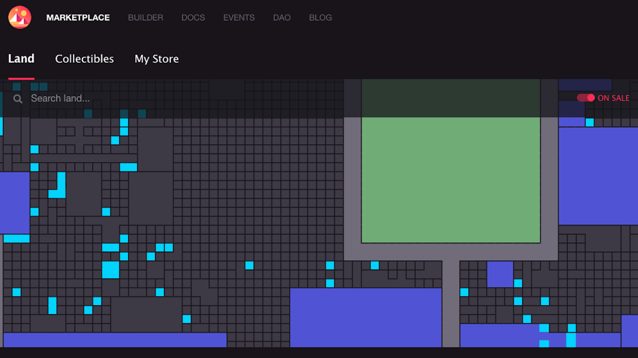 The Decentraland map showing available parcels of land for sale. (Photo Courtesy: Decentraland.org)