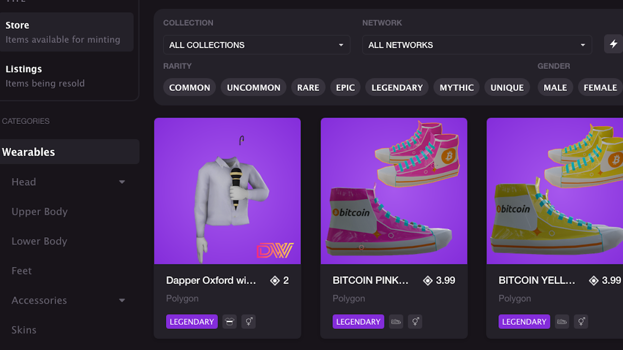 A view of the Decentraland collectibles and wearables marketplace. (Photo Courtesy: Decentraland.org)