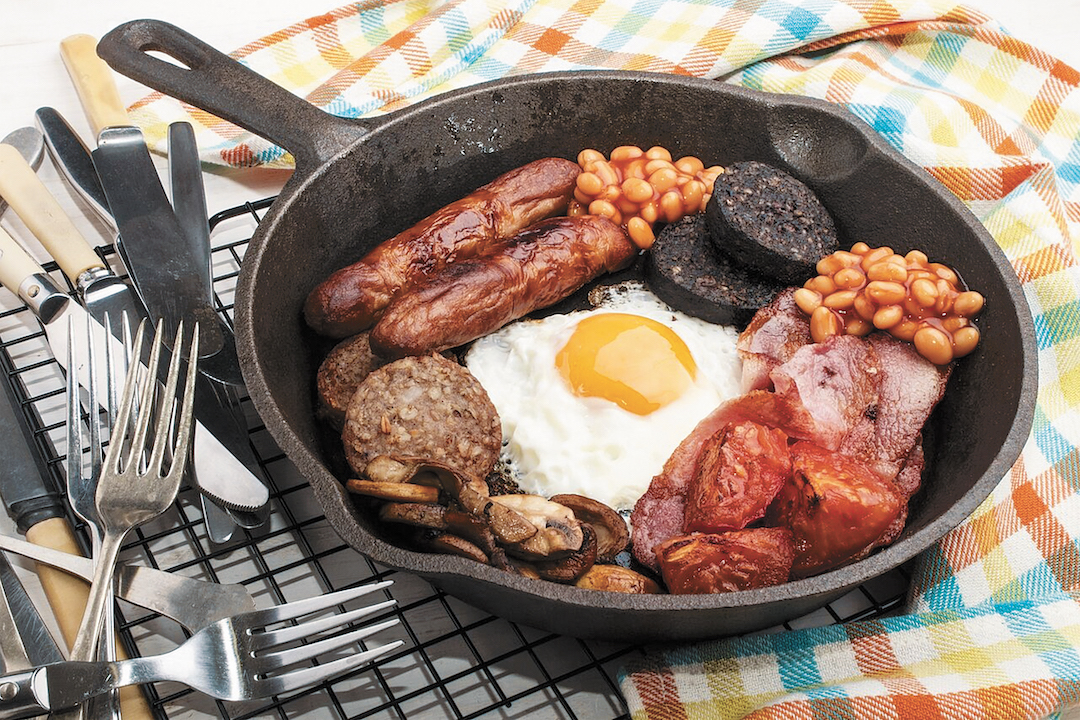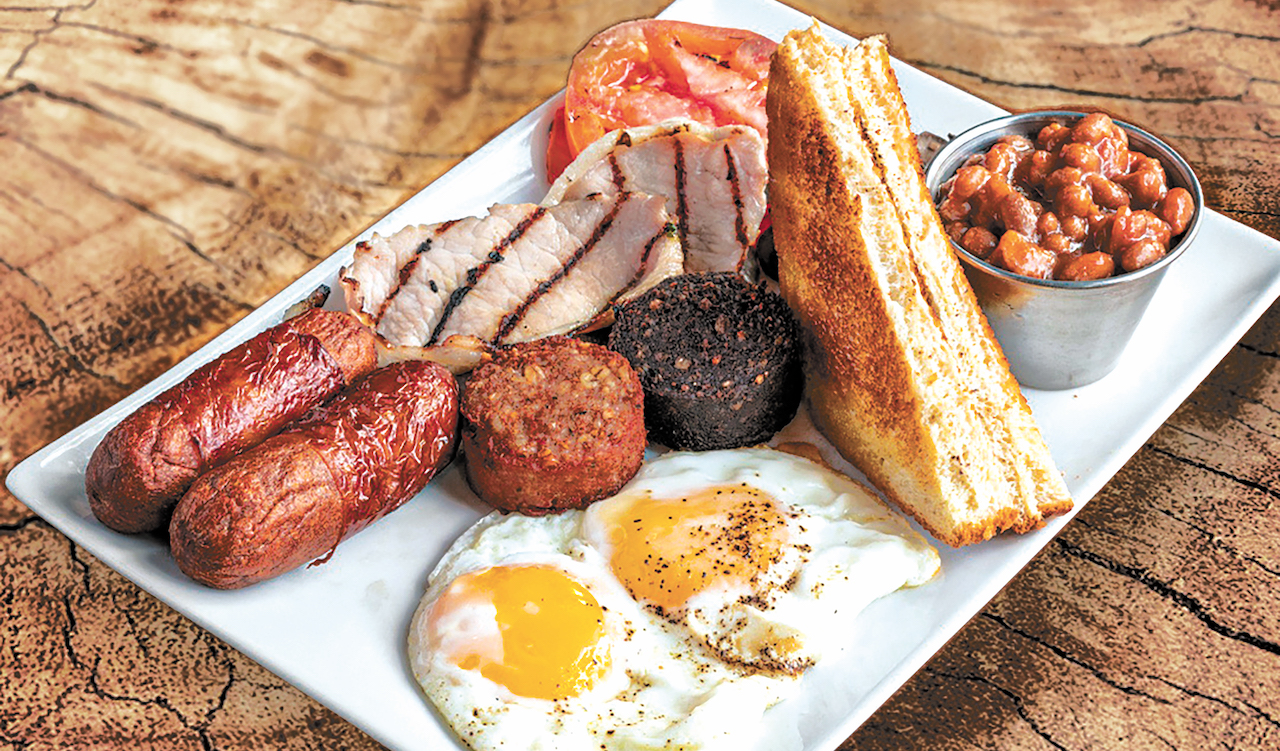 Longtime Irish pub, Tara Inn’s full Irish includes centuries-old quintessential Irish sausage — the banger. Made with lean and fat pork that’s ground and tossed with herbs and spices, it’s then encased in hog casing and packs a hearty punch. The meal also comes with grilled Guinness brown bread, potato scone, and it’s sure to be the only meal you need for the day!