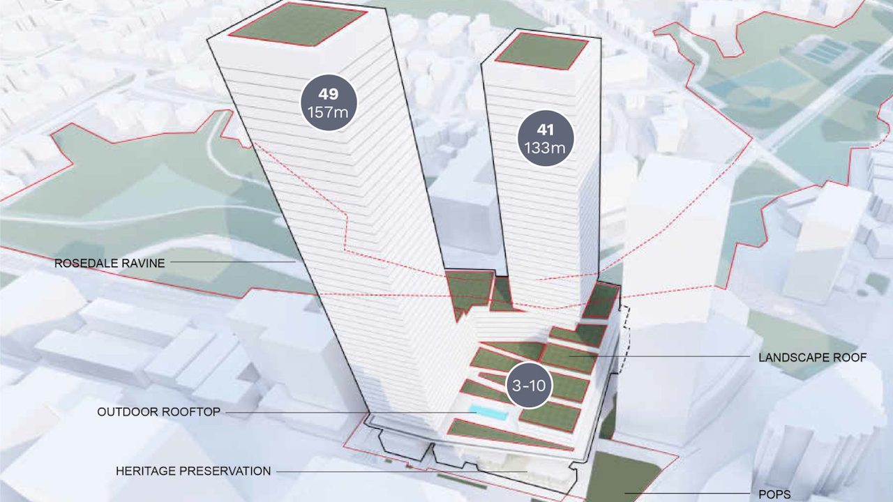 Rendering of the rear of the site overlooking Rosedale Ravine (835Yonge.com)