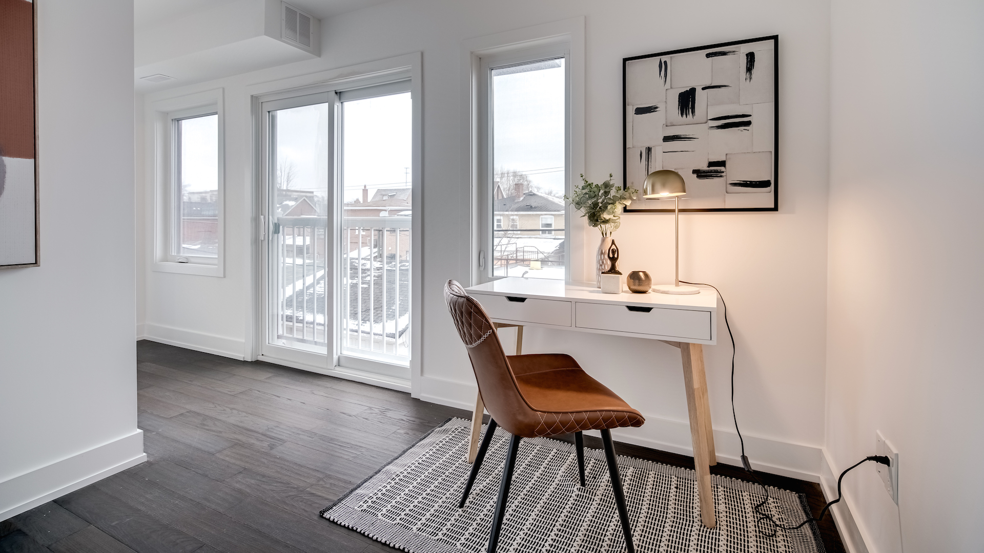 On the second level you’ll find an open concept den, which is the perfect spot for a home office. Sliding doors provide access to another Juliet balcony.