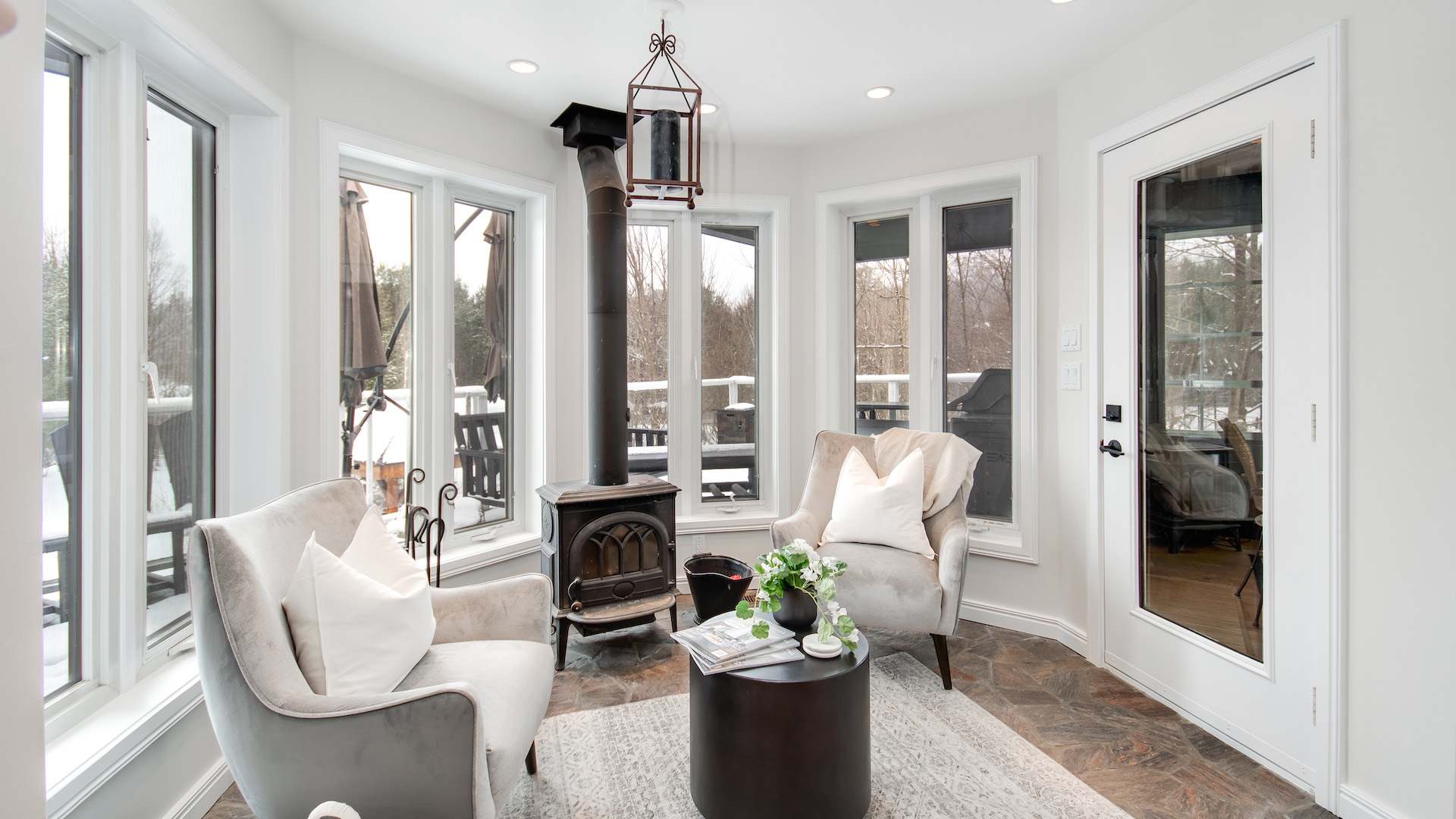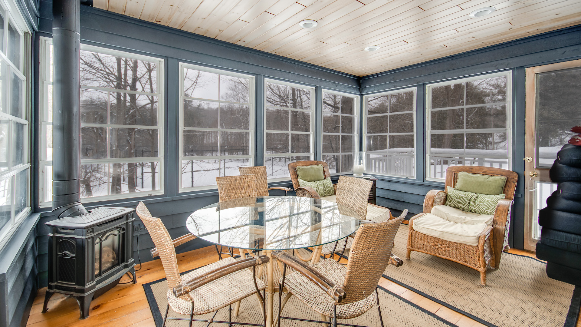 This sunroom allows you to enjoy natural light without venturing outside.