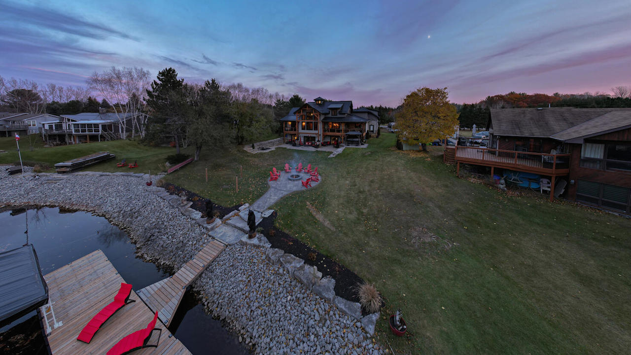 Just look at this beautiful waterfront property. Do you see the artfully-placed fire pit? Imagine whiling away the evening with good company, roasting marshmallows and stargazing. You could even sneak down to the dock for a cheeky night swim – if you dare.