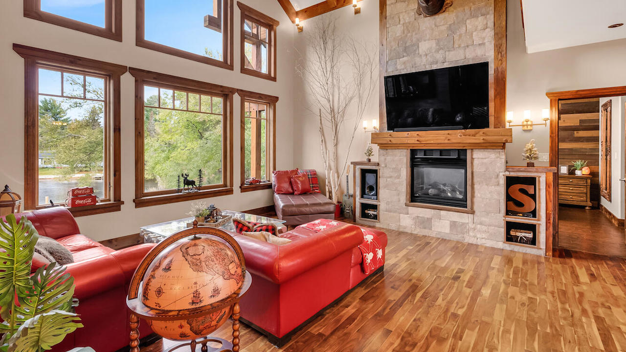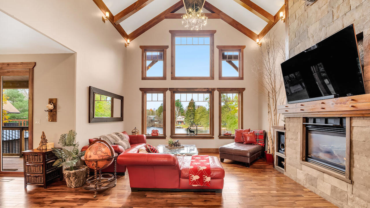 Listed at $3.199 million, this luxurious riverfront property exudes comfortable living in the heart of cottage country.