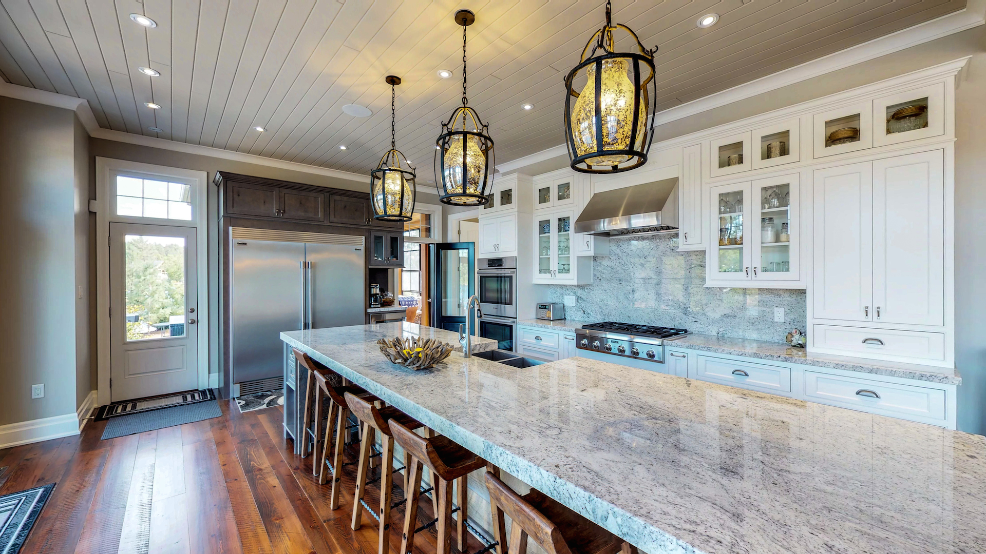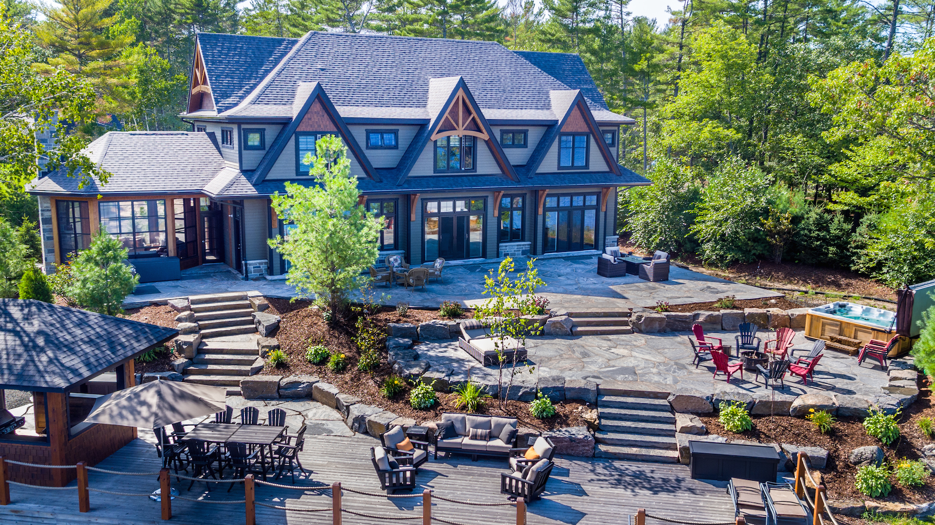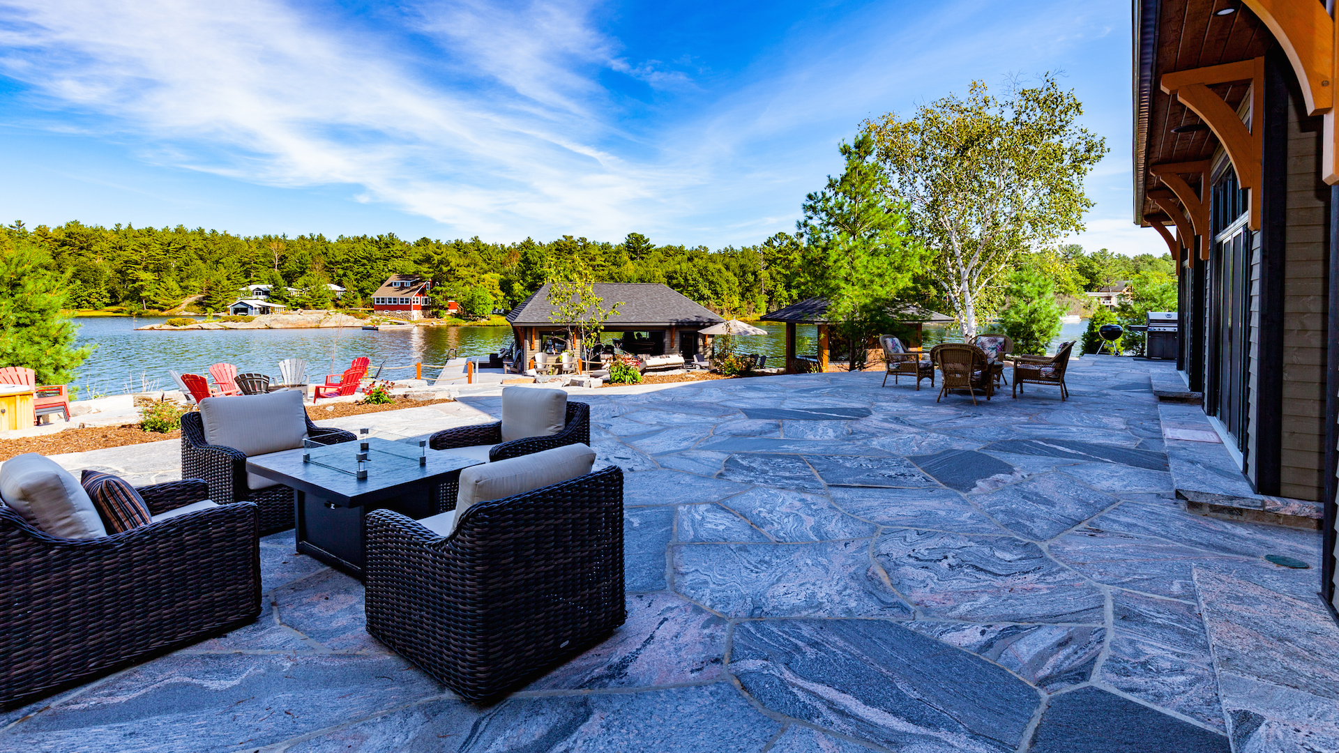 Check out the tiered granite patios the provide more than enough space for long weekend parties.