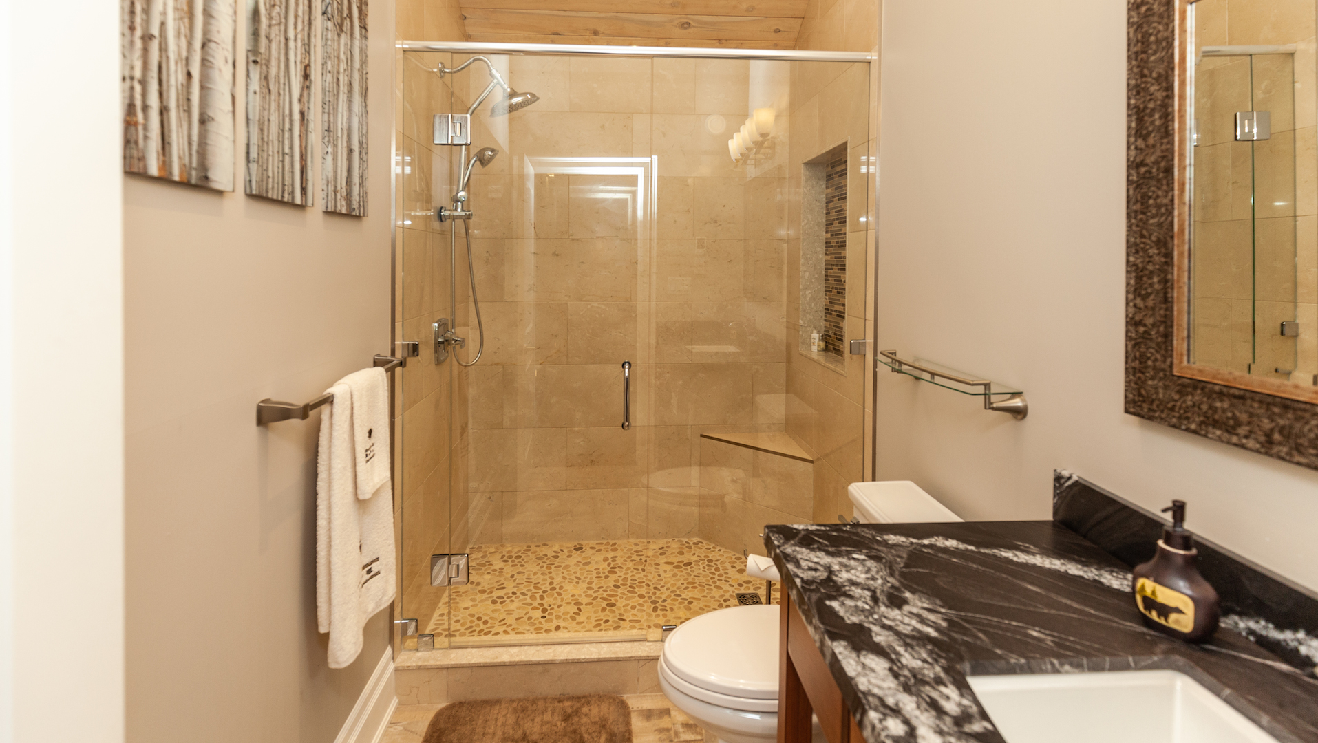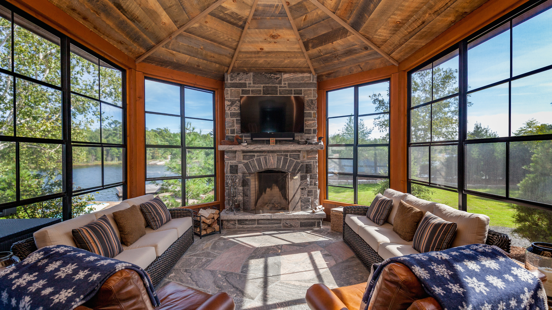 The Muskoka room is a true showstopper. A custom granite stone fireplace acts as the focal point while surrounding windows bring in all the natural light. The best part is it was designed for year-round use.