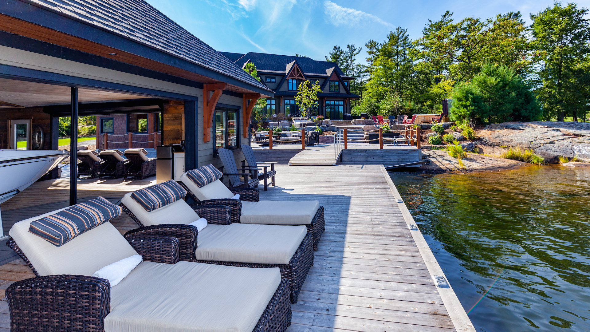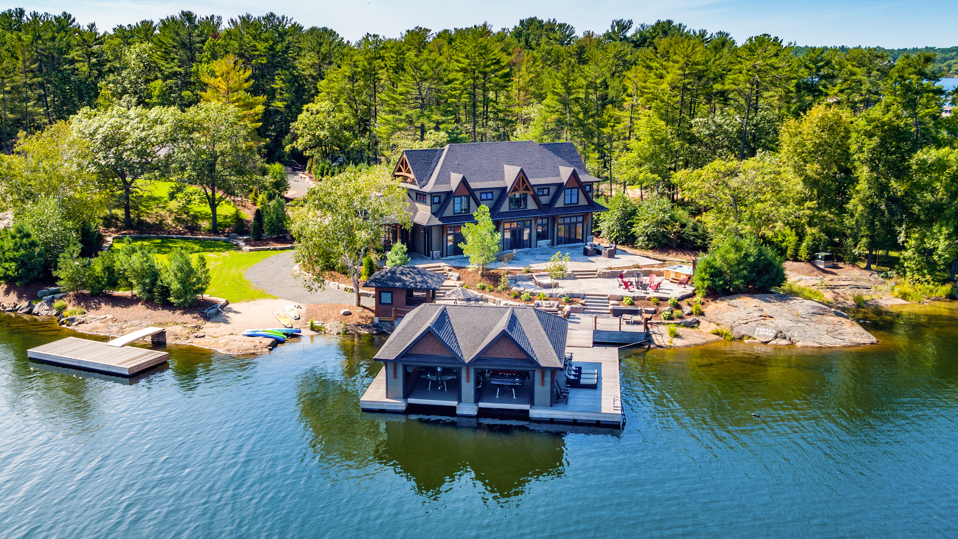This cottage was built in 2018 and spans a generous 3,270 square feet across two levels. It offers six bedrooms, four bathrooms and a whopping 744 feet of water frontage along the Georgian Bay shoreline.