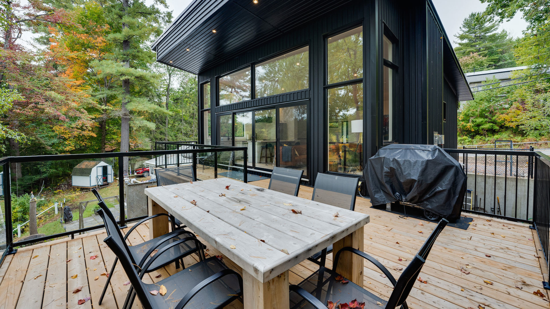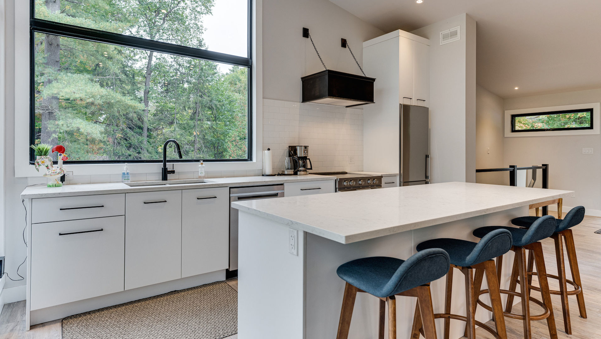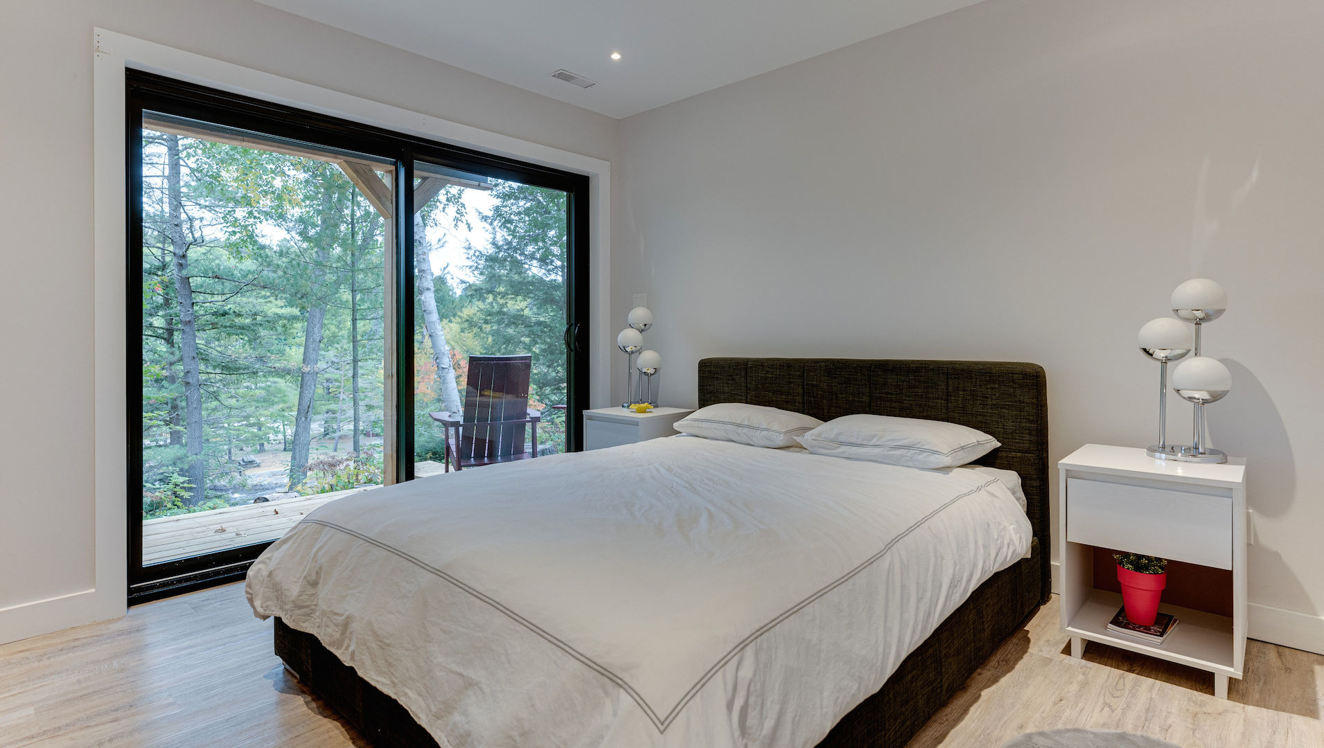 When building the Huntsville area home last year, the designers emulated this design philosophy by taking full advantage of its surrounding landscape. It perfectly overlooks Port Sydney Falls and even the deck is built right into the rock. Inside, the interior spans 2,000 square feet across two levels.