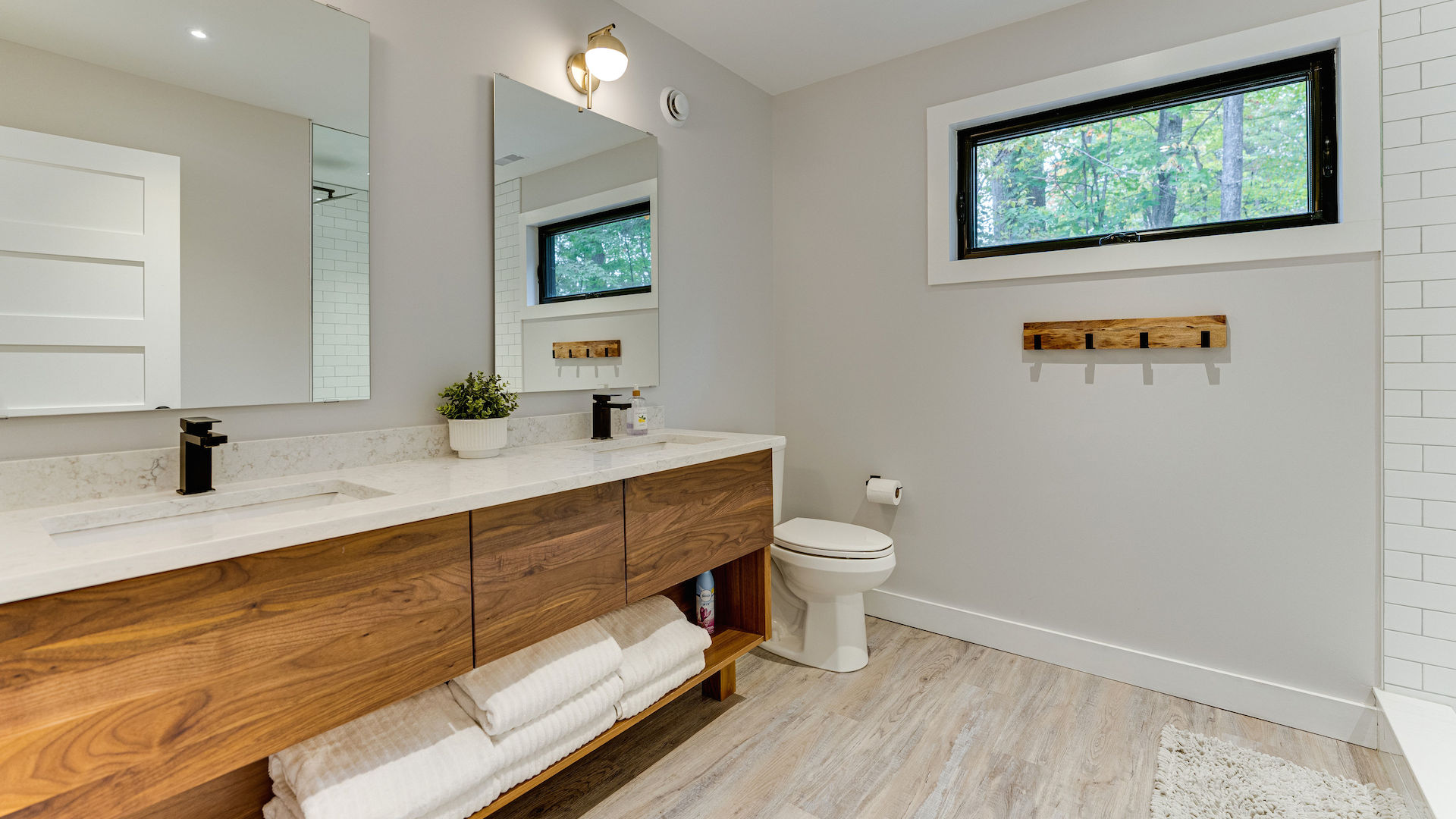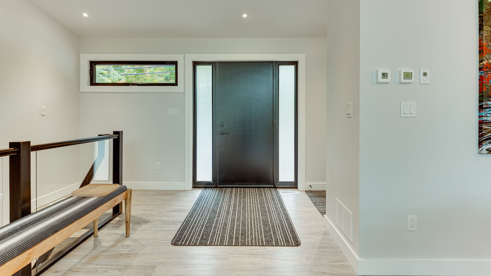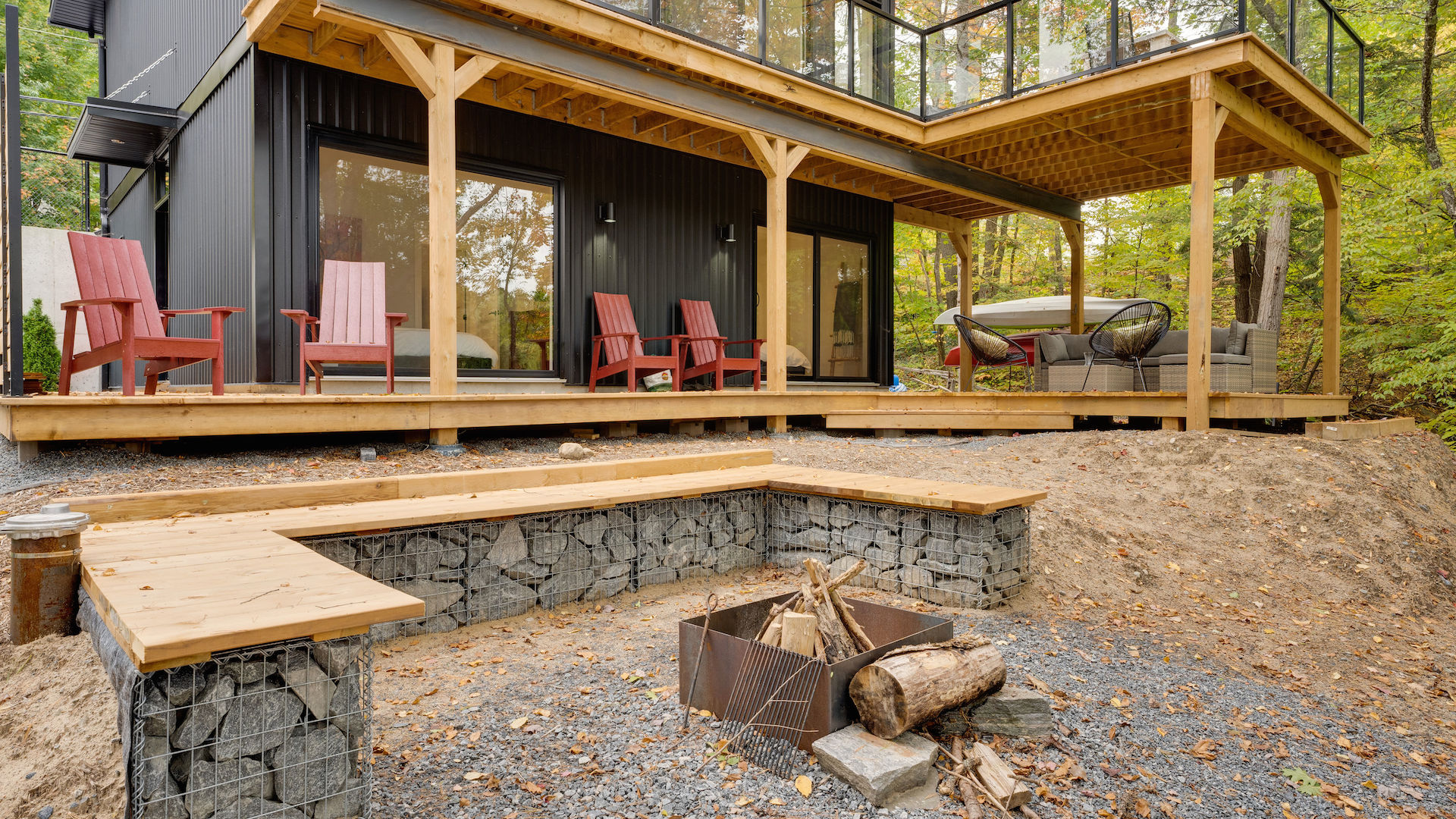 When building the Huntsville area home last year, the designers emulated this design philosophy by taking full advantage of its surrounding landscape. It perfectly overlooks Port Sydney Falls and even the deck is built right into the rock. Inside, the interior spans 2,000 square feet across two levels.