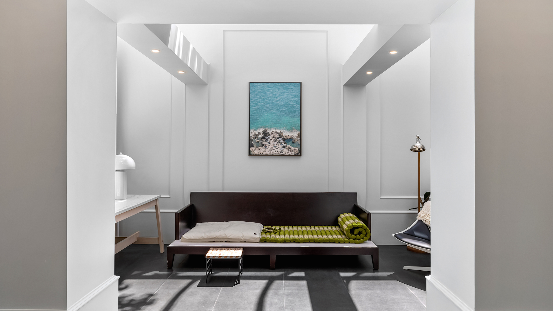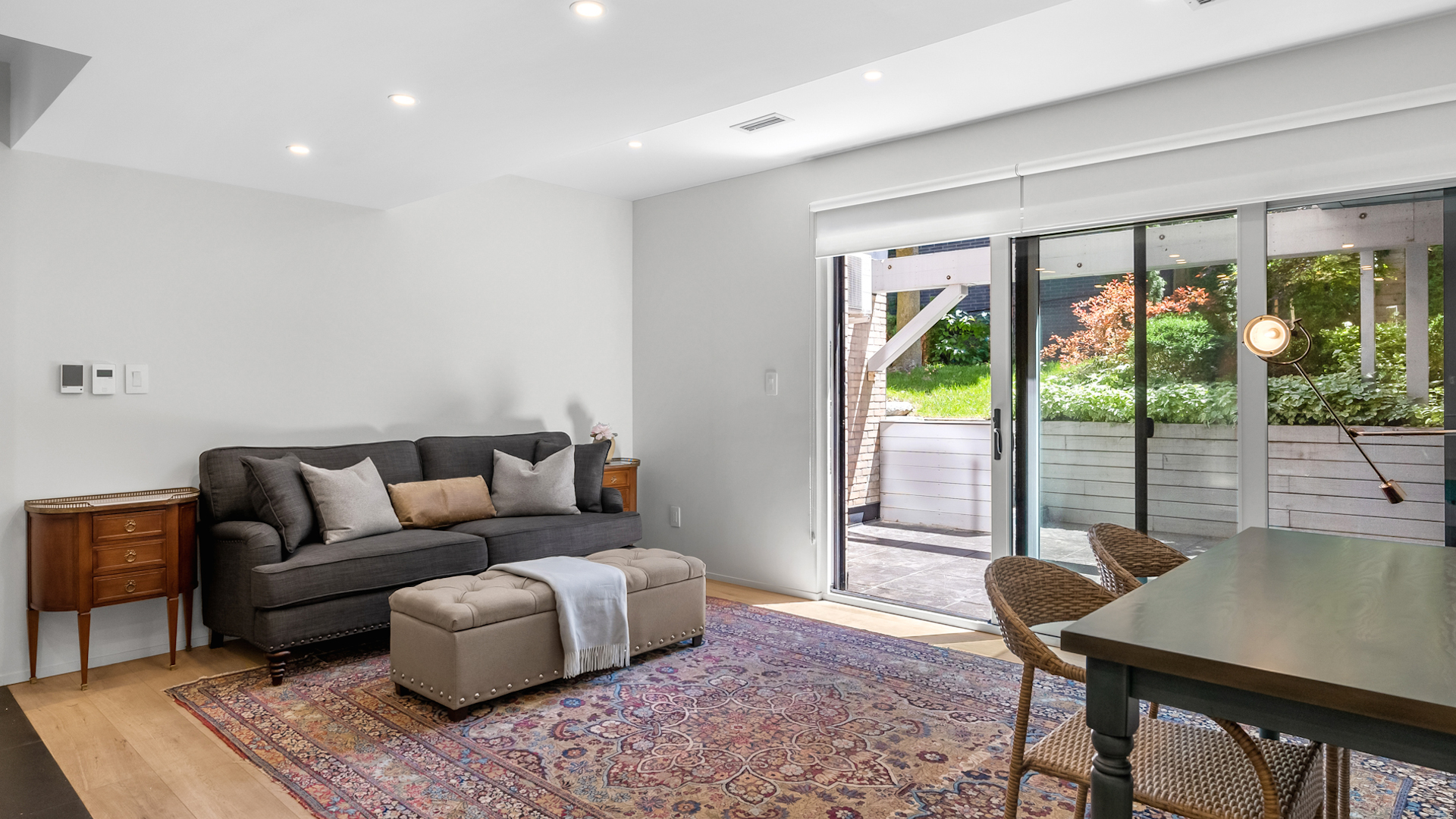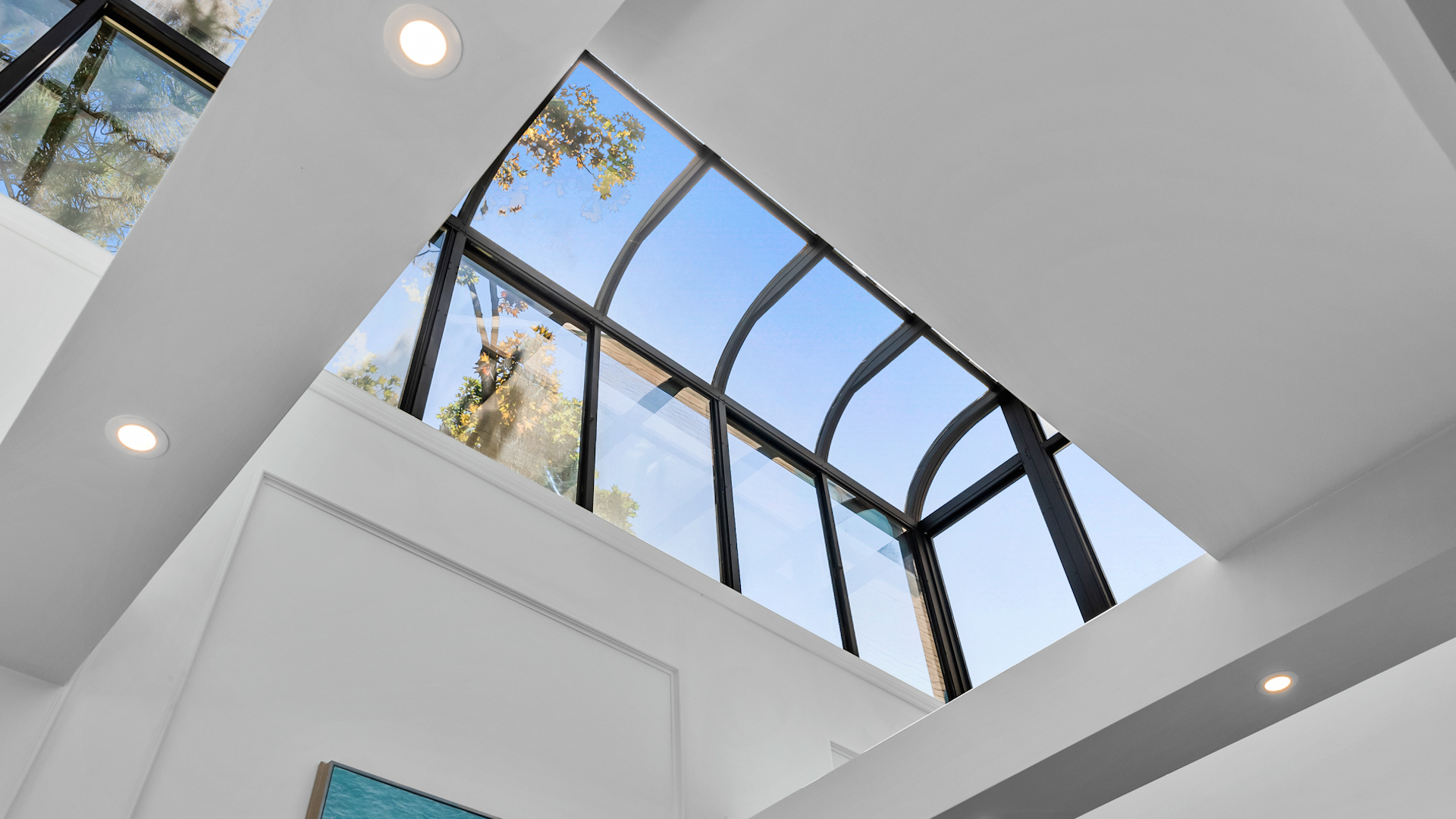 The lower level doesn’t feel like a basement at all — thanks to a massive solarium-style lightwell that reaches up to the main floor and allows sunlight to cascade down.