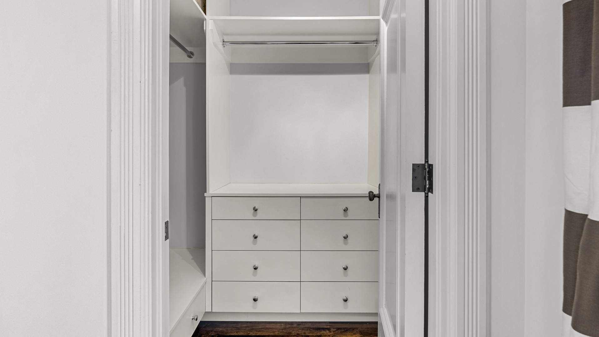 Serene vibes can be found in the primary bedroom located on the second level. Crown moulding gives it an elegant feel, while a walk-in closet provides a ton of storage.