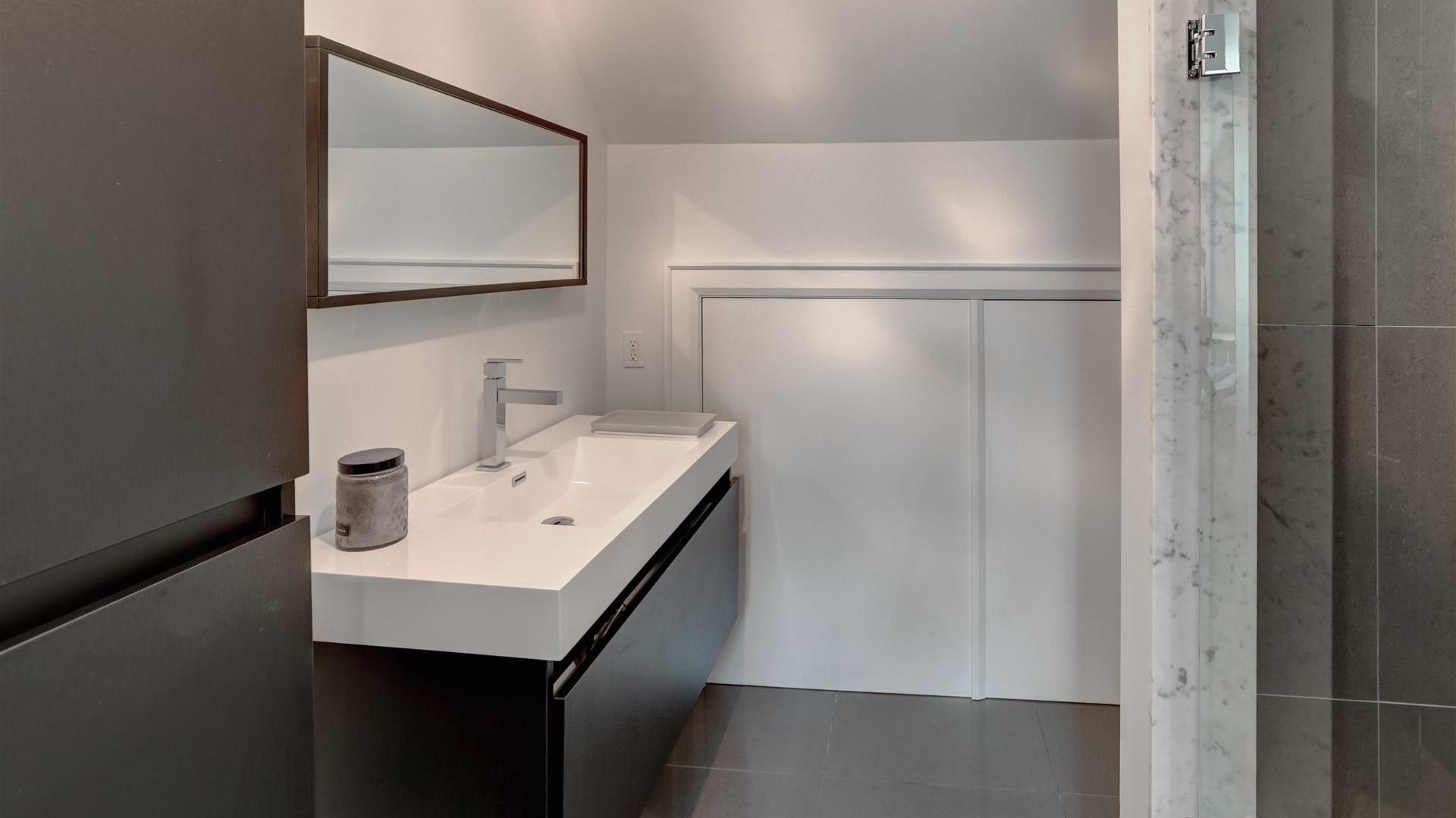The ensuite bathroom is not too shabby. It comes with double sink, heated floors and large walk-in shower.