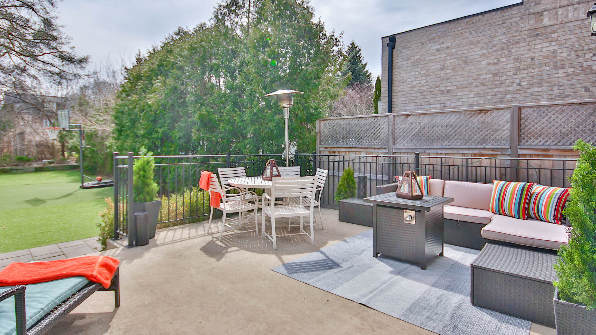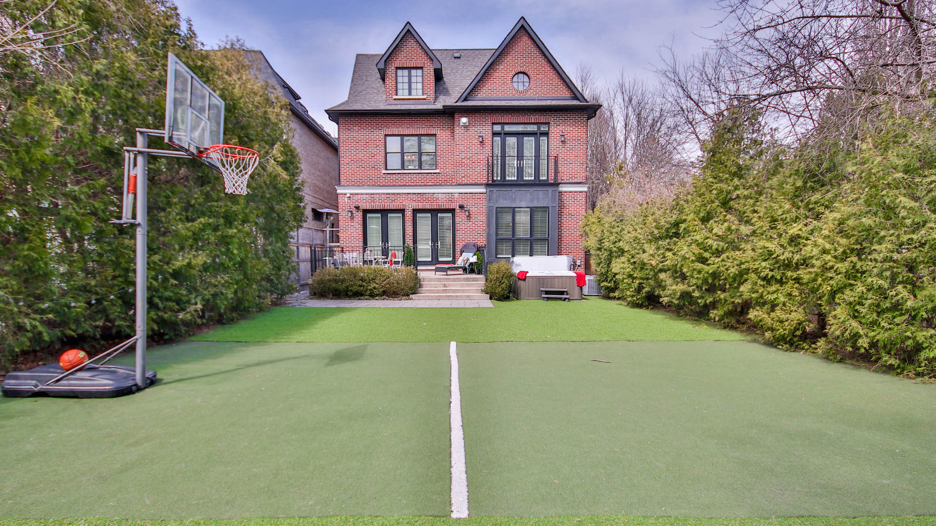 The outdoor living space is just as nice. The backyard comes with plenty of grass to roam around, as well as a hot tub area.