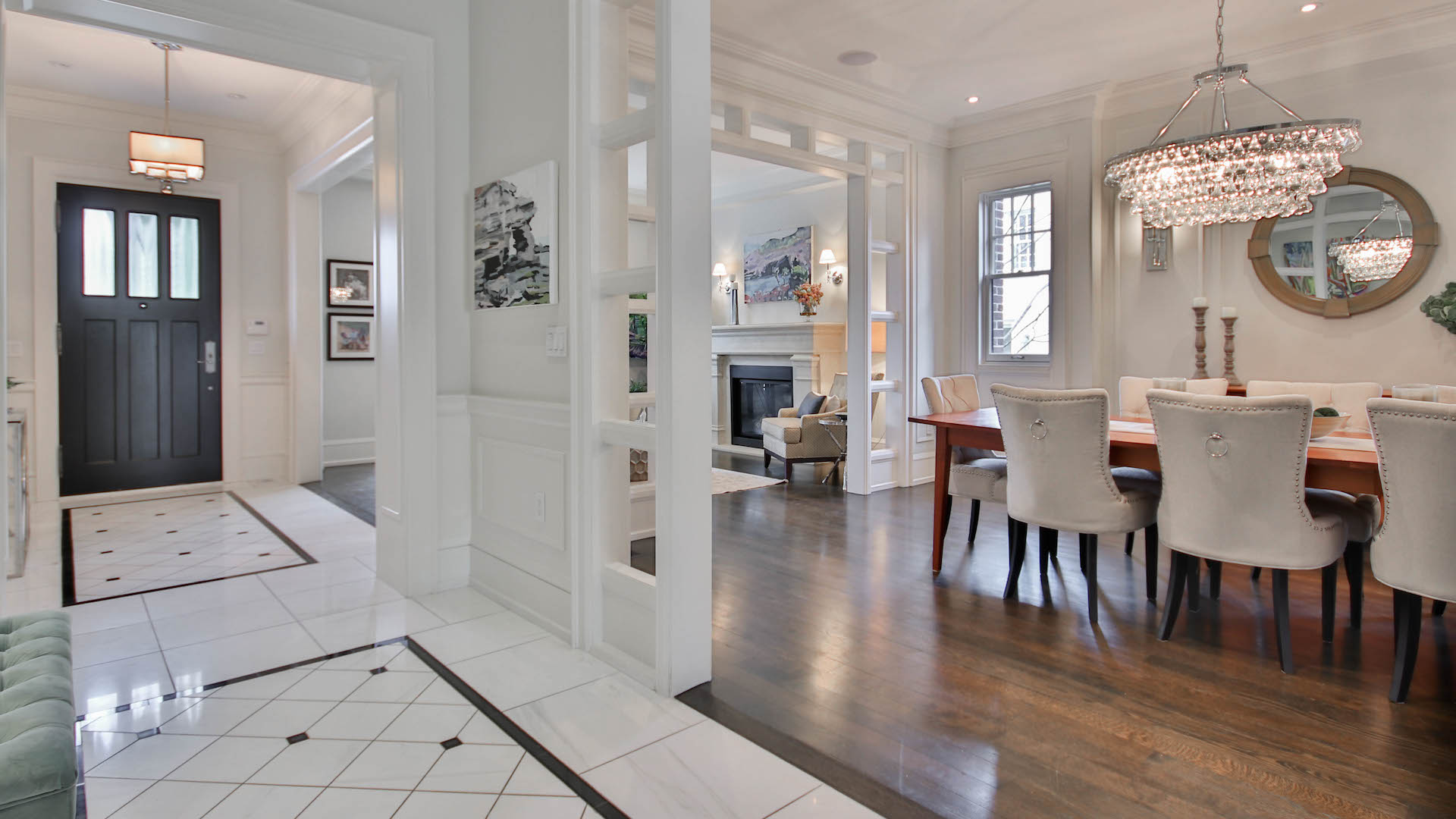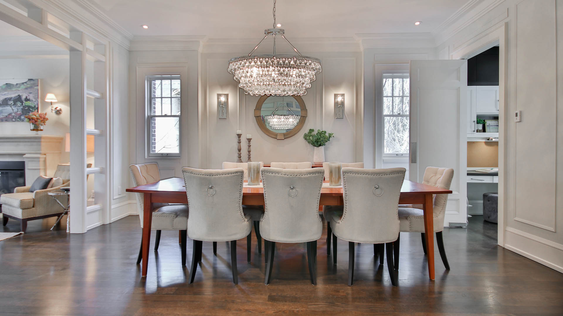 The dining room is also open to the entryway and living room. This room also has convenient access to the butler’s pantry.