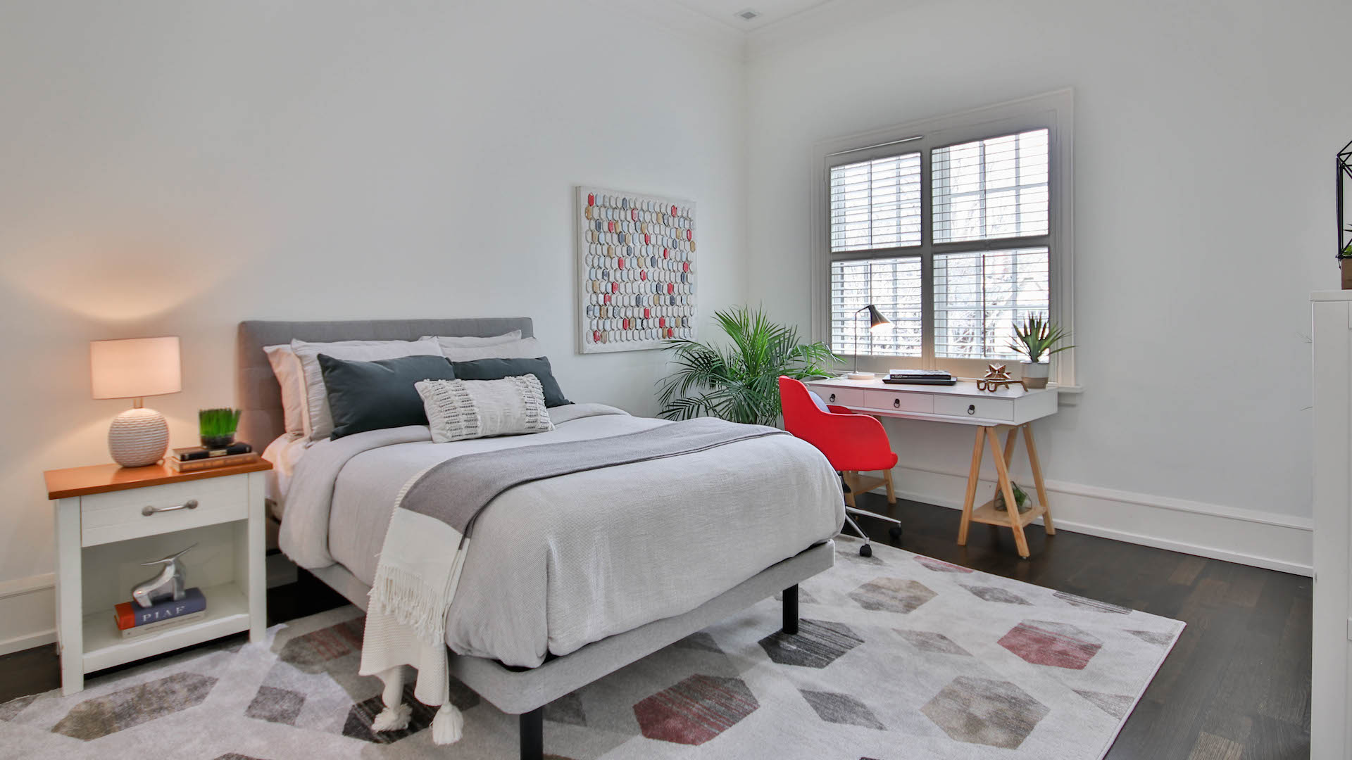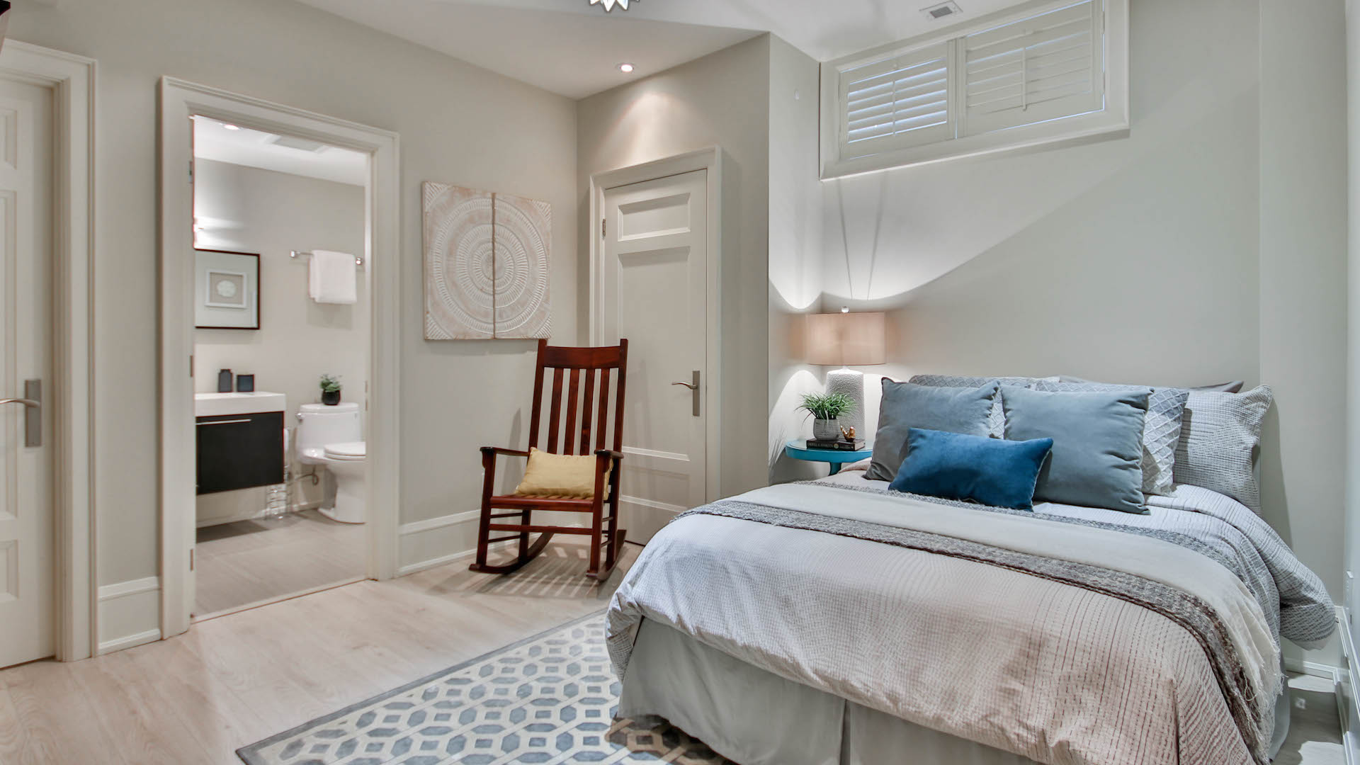 There’s another bedroom on the third level, complete with a desk nook and ensuite bathroom.