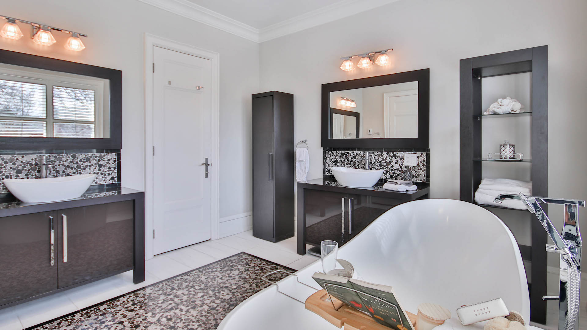 The future owners will enjoy unwinding in the six-piece bathroom. The spa-like space comes with a freestanding bathtub and glass shower.
