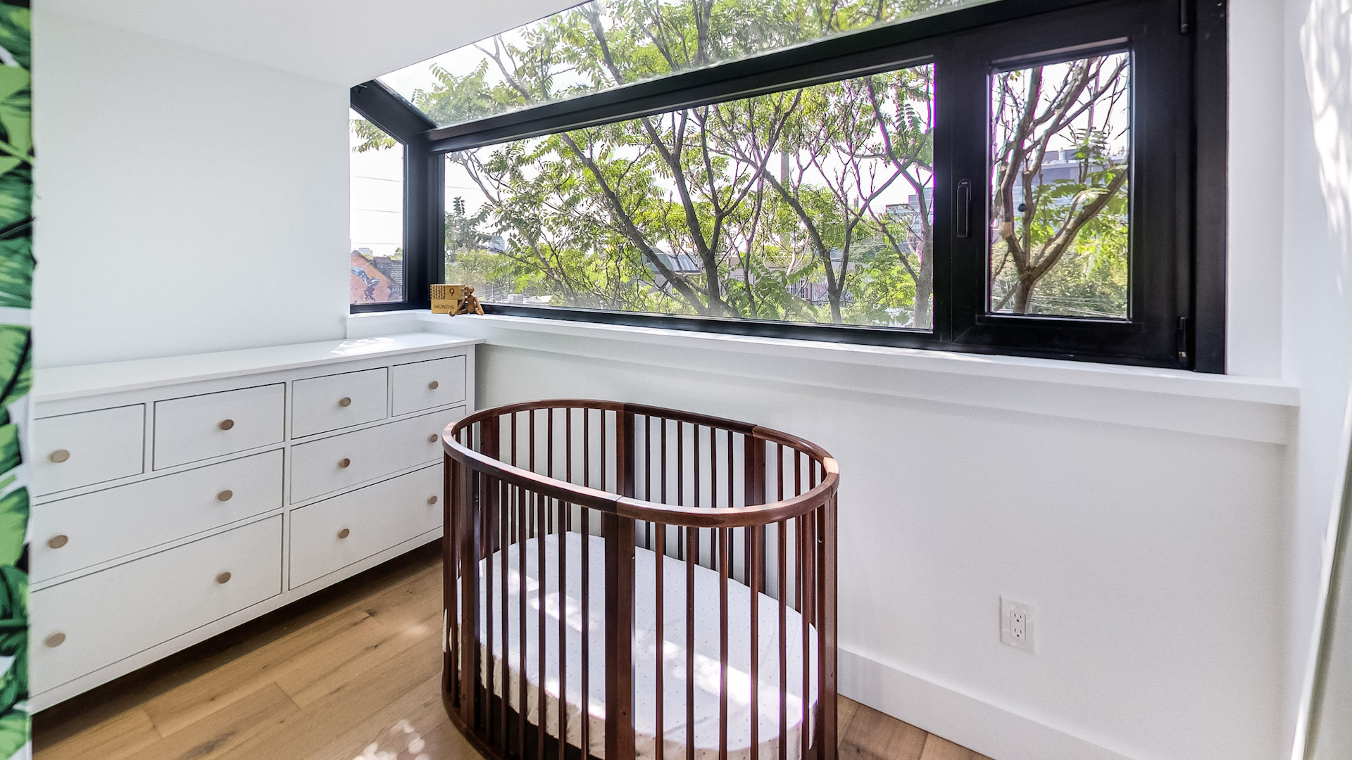 The primary bedroom includes a modern ensuite bathroom and a secondary room that could make an ideal nursery or study. The boxed solarium window invites beautiful dappled light throughout the day.
