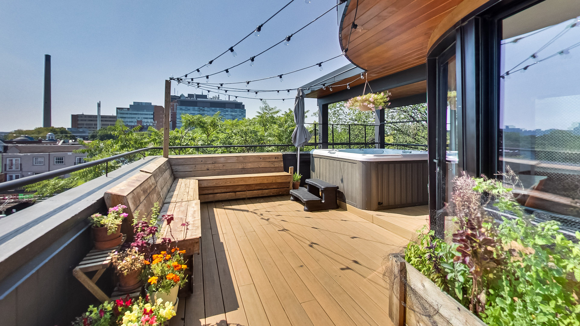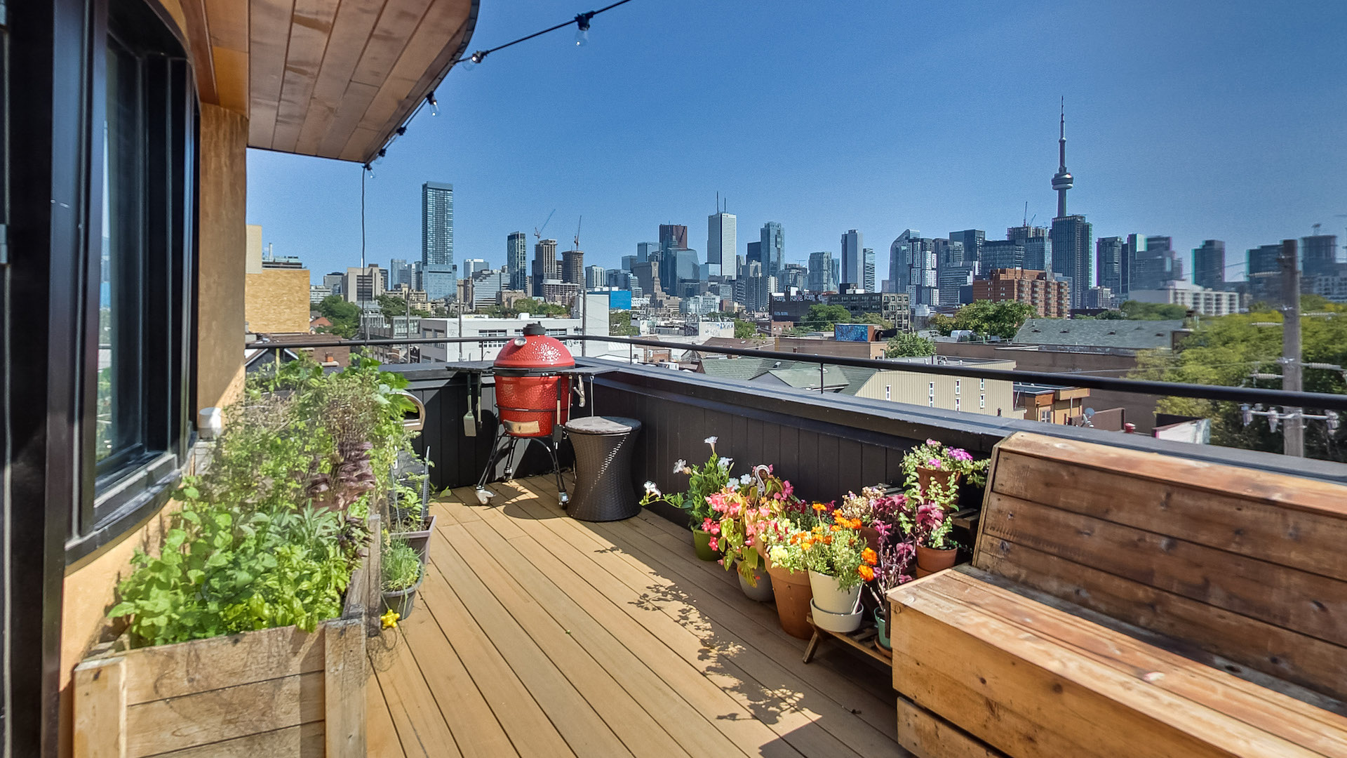 The rooftop patio is an urbanite’s dream. With unobstructed views of Toronto’s skyline, a hot tub for seven and plenty of space for gardening or sunbathing, spending a summer up here would be a pleasure.
