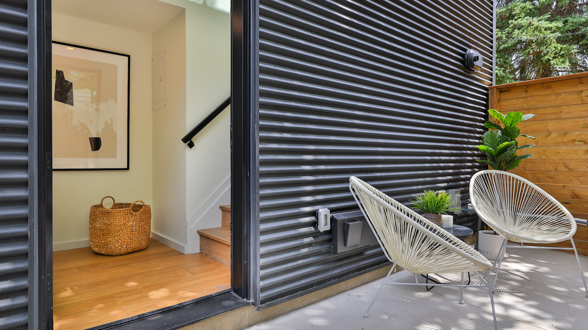 The laneway house, built atop the double garage, features its own small patio and makes for an ideal apartment living experience.