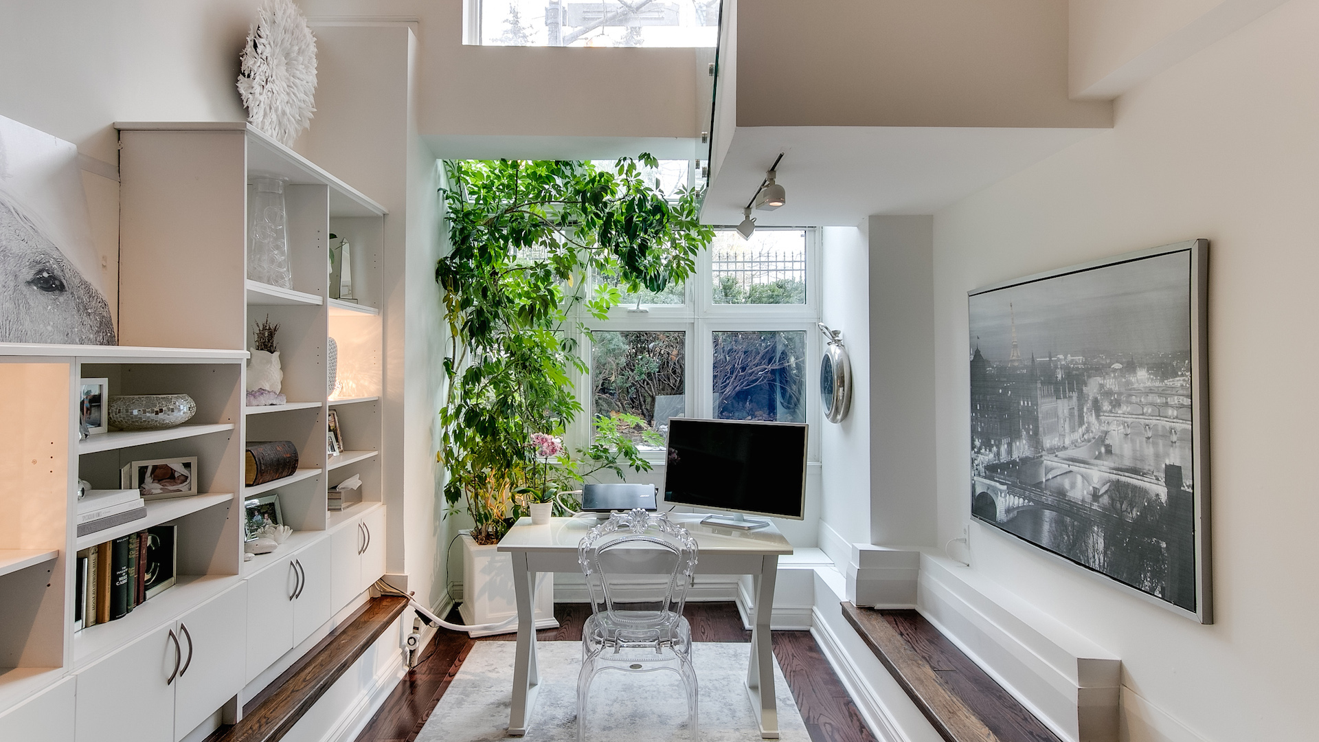 All that greenery and natural light make a delightful spot for a home office.