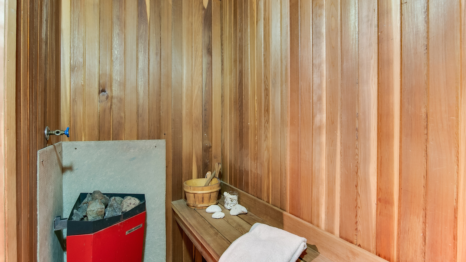 Speaking of relaxation, why not melt away your worries in this indoor sauna? It’s on the lower level, where you’ll also find a second bedroom, bathroom and a beautiful family room.