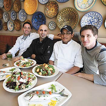 HIGH RESTAURANT TURNOVER may have plagued this address in the past, but Shoom Shoom’s extraordinary service and a bangfor- your-buck modern Middle Eastern menu make this venture viable. The lineup that starts from just inside the door and overflows into the mall’s hallway is a case in point. A very calm and collected hostess juggles the masses. Sunshine permeates the wall of windows along one side, echoed by the brightly lit open kitchen across the room. The decorative theme is neutral — walls, tables, chairs and fabrics a mishmash of light browns, taupes and creams.