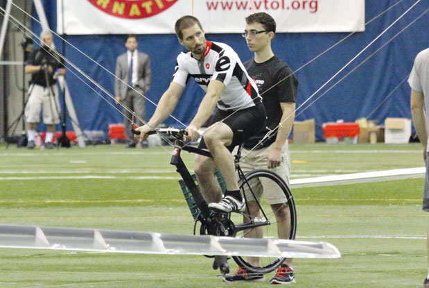 Back in June, Atlas, a human-powered helicopter, broke records when it climbed to a height of 3.3 metres during a 64-second flight. The ’copter is the brainchild of University of Toronto grads Cameron Robertson and Todd Reichert who, along with local engineering team AeroVelo, won the AHS Igor I. Sikorsky Human Powered Helicopter Competition, including a $250,000 prize.