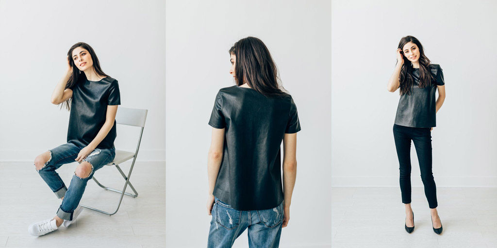 But more about the garments themselves. The current Jonah Jay collection is a seasonless, capsule collection of basic gear that’ll worm its way into any closet with ease. Our money’s on the crisp t-shirt ($108) which is bound to become a wardrobe staple of many a Toronto gal. The cut is boxy — but not too boxy — and the sleeves hit high enough on the arm to maintain a feminine look. Plus, the PU continues on the back which truly is the ticket to a slick leatheresque tee. Just add jeans and your work is done.