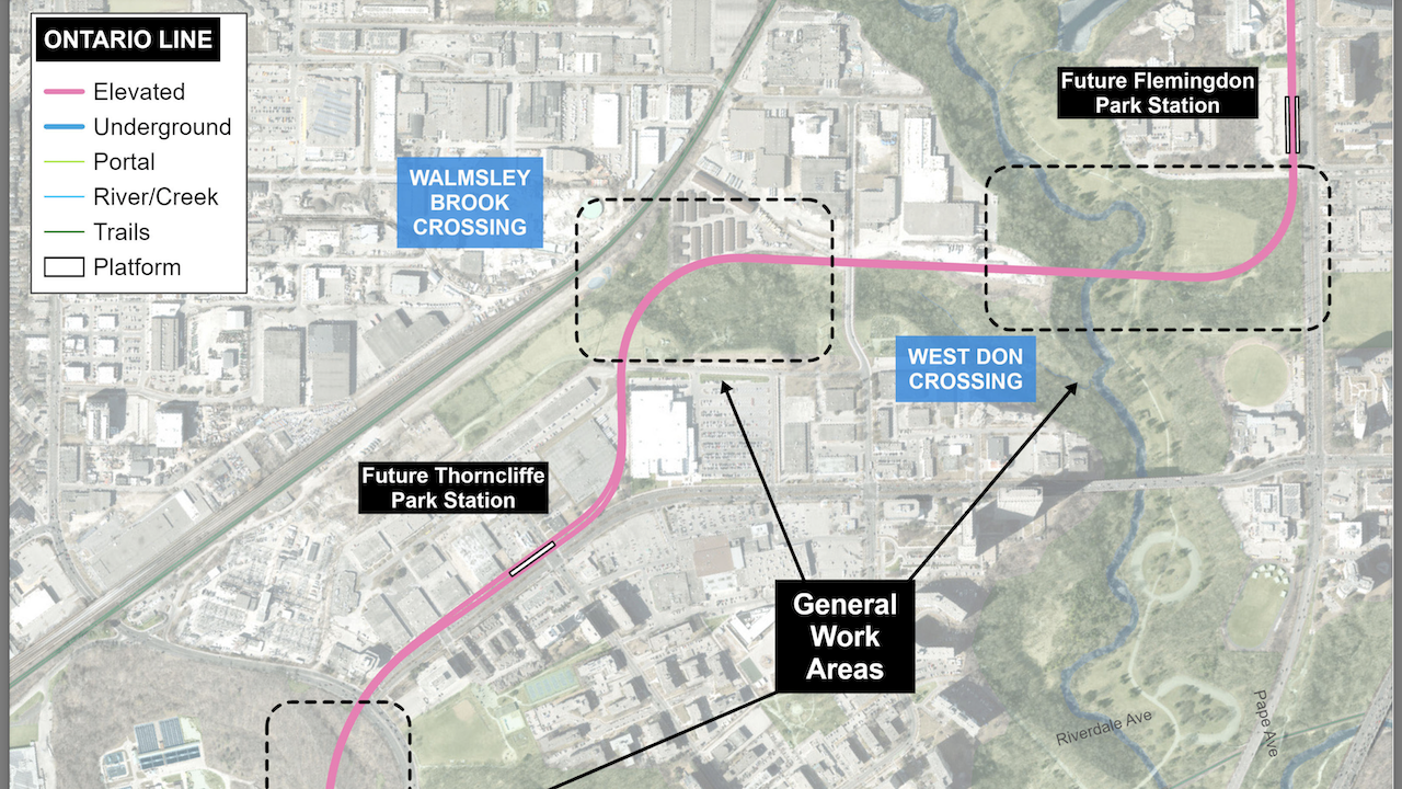 “At this time, we estimate that crews will be removing 2,787 trees in the areas surrounding the future route of the Ontario Line from the three areas labelled on the map above: the Don Valley crossing, the Walmsley Brook crossing, the West Don crossing,” read the Metrolinx notice.