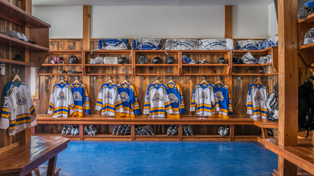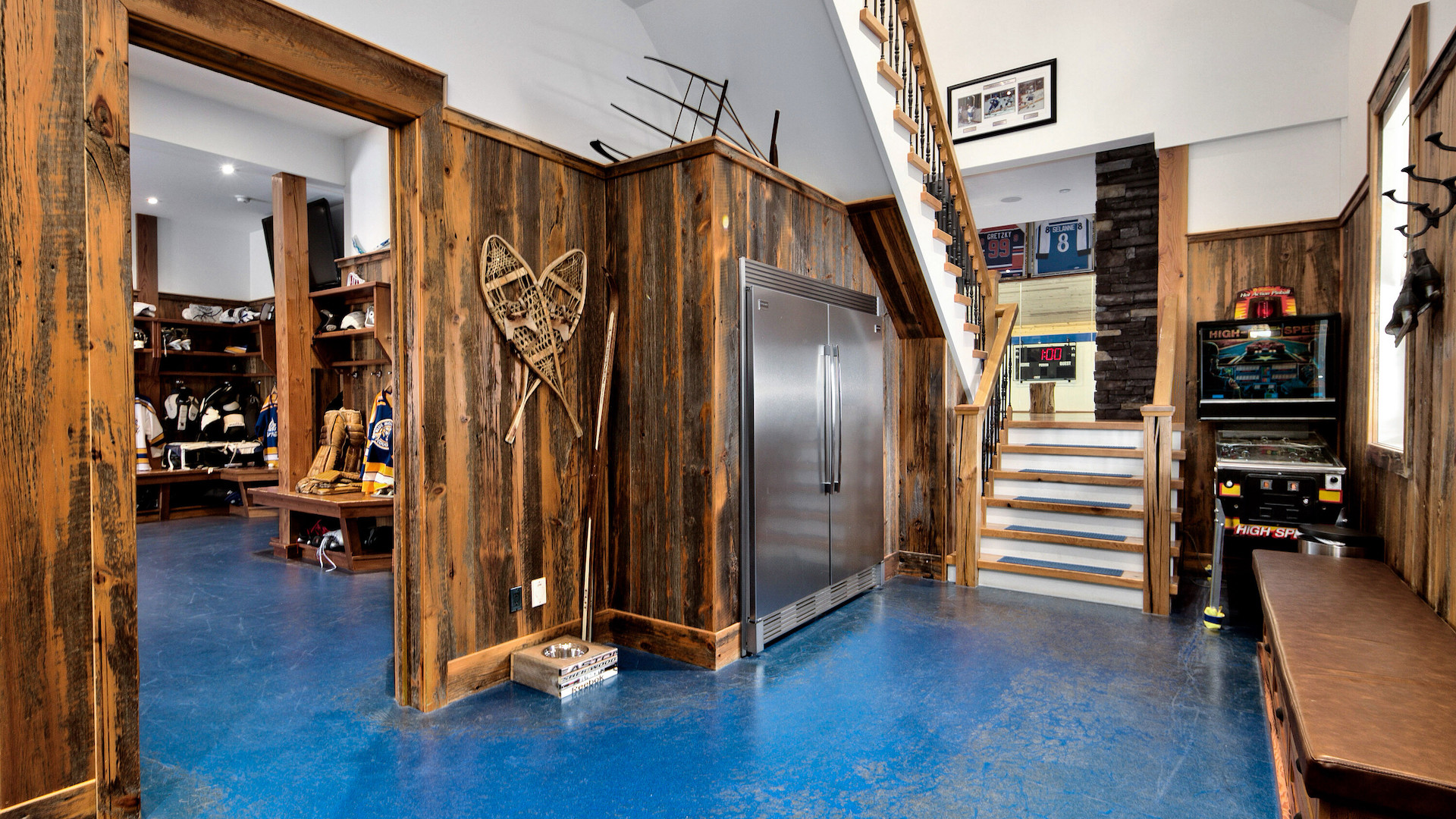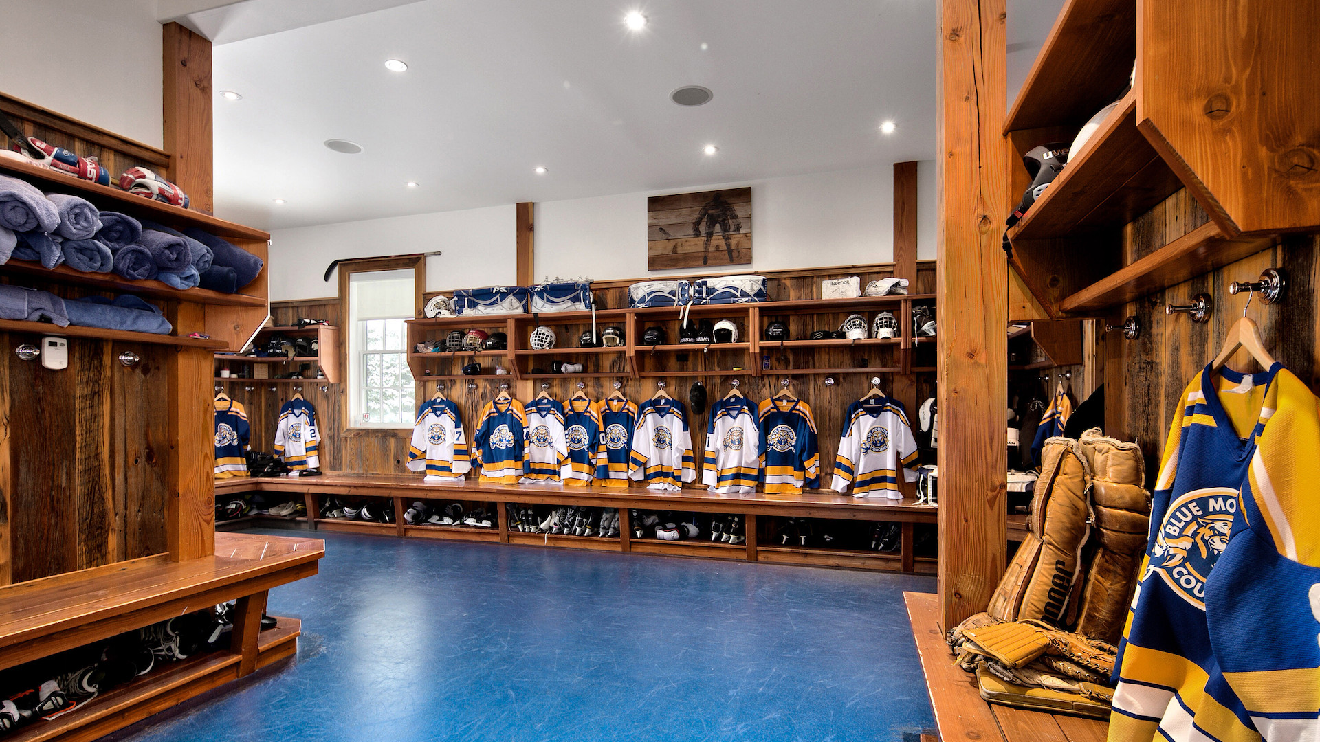 You’ll find a private indoor hockey arena perfect for three-on-three games within the three-bedroom, four-bathroom home, and there’s even a centre viewing gallery with a full bar, kitchen, built-in televisions, a linear fireplace and access to the home bench for the full experience. But the hockey love doesn’t stop there. The home also boasts a hockey change room with a rustic wood finish, plus your very own new Olympia Zamboni.