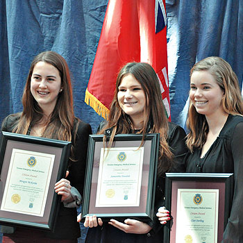 Branksome Grade 11 students Morgyn McKerlie and Claire Stirling, both 16, and Bishop Strachan Grade 12 student Samantha Teasdale, 18, were recently awarded by the Toronto Emergency Medical Services (EMS) and nominator Nick Manos for heroic actions.