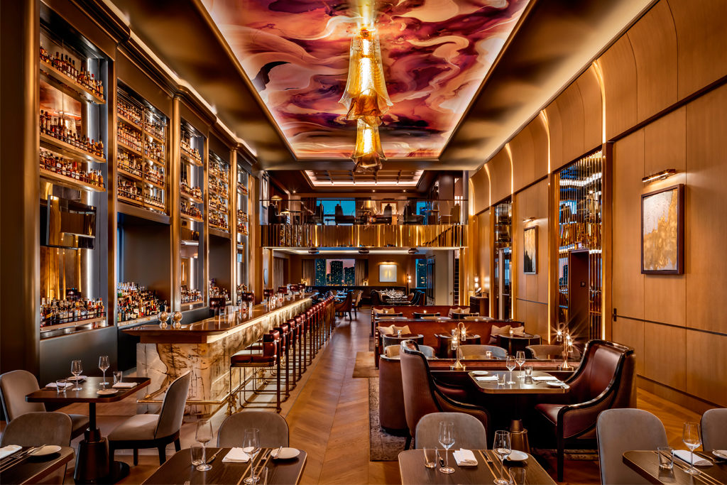Sometimes all one wants to do is toss on a vintage fur and embrace a snazzy eve out. LOUIX LOUIS is here for those needs, high in the clouds on the 31st floor of the luxe new St. Regis hotel. A swirling mural resembling the bottom of a whiskey-filled rocks glass oversees the gilded space. Below, folks dabble in the 500-bottle-deep collection of dark spirits. The cocktail menu shares the history behind the drinks, like the Hanky Panky — gin, sweet vermouth and Fernet Branca — which has a feminist bent, created by the first lady head bartender at the American Bar in the Savoy. Highfalutin patrons can keep their private bottles in an on-site cabinet, serving their guests when keen to impress. 325 Bay St.