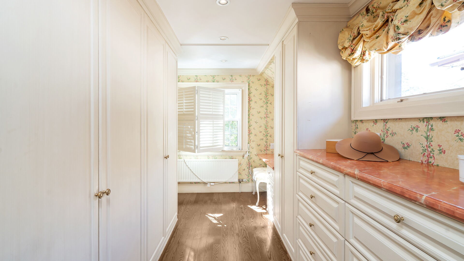 Also located on this floor are a pretty dressing room and a walk-out terrace with serene water views.