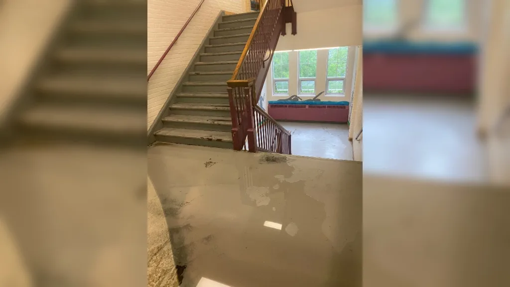 Karpoche said that an entire section of stairs (three floors) was closed due to flooding.