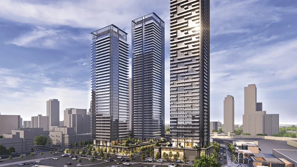 Cadillac Fairview, in partnership with Shape Properties, has begun the redevelopment of Fairview Mall with an application to transform the vast surface parking lots into vibrant urban communities. With plans for three highrise towers and more than 1,400 units, this project aims to reimagine the mall’s parking areas, enhancing both functionality and esthetics. The proposal includes a village green, outdoor amenity spaces and a retail pavilion.