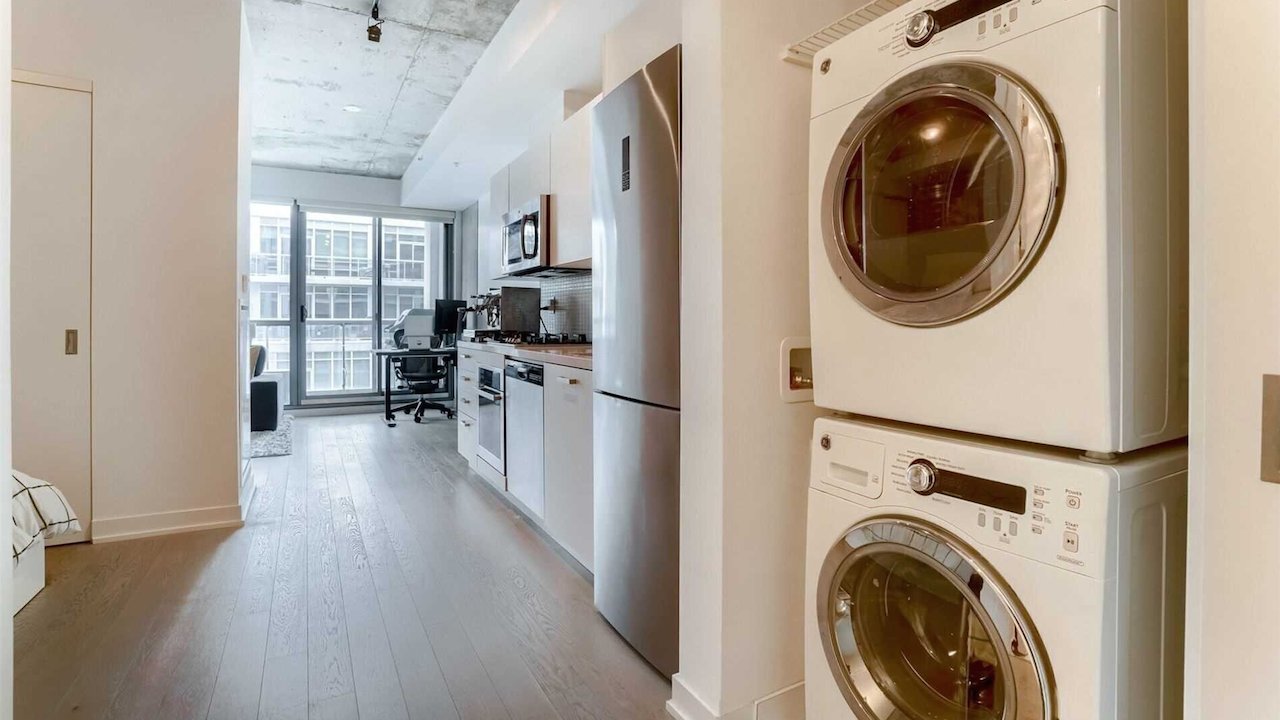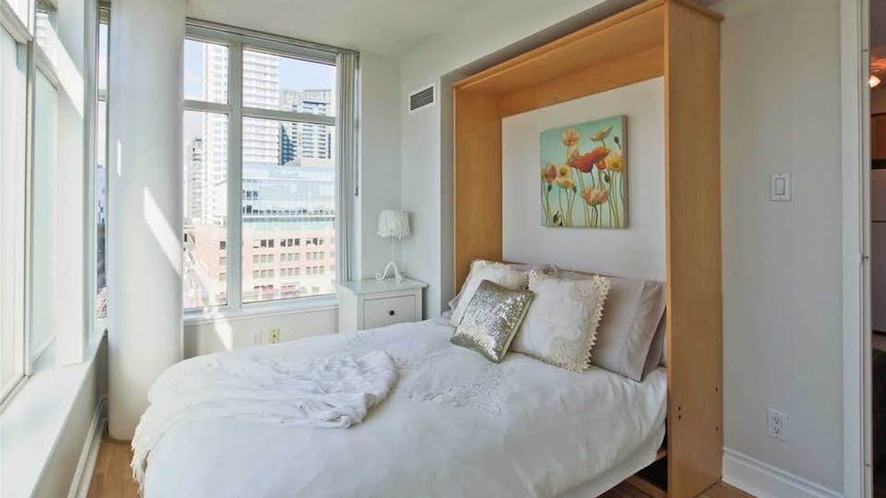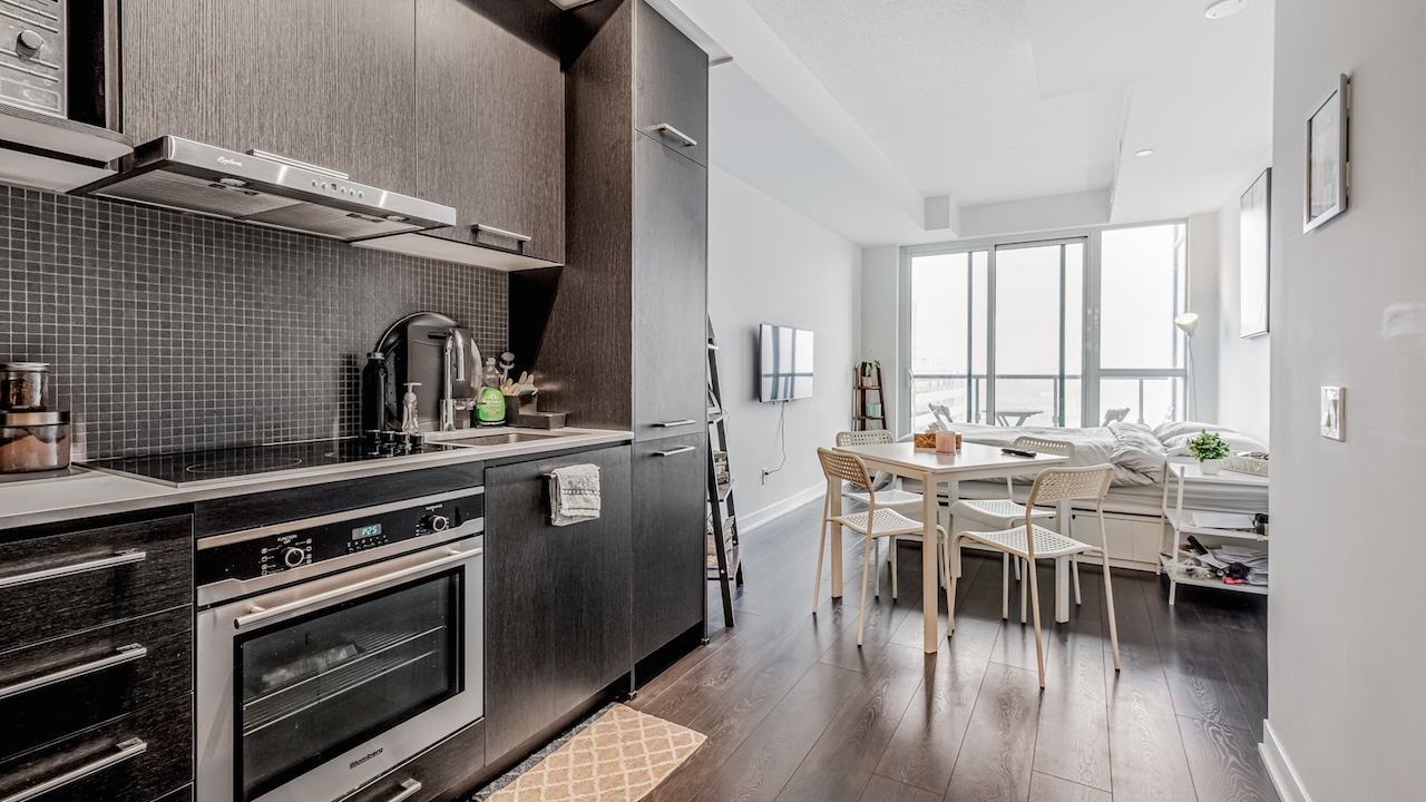 Located in the Entertainment District, this 499-square-foot studio has a functional layout and access to modern amenities, including a fitness room, yoga room, sauna and party room. It has a $235.91 monthly maintenance fee.